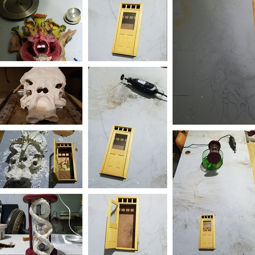 outfitting an already made door, I planned everything around the mushroom infected head.