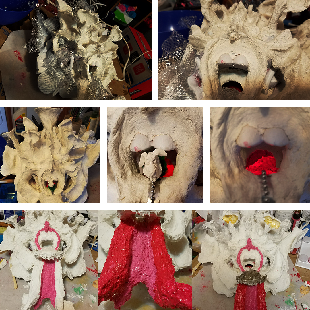 Using paper-mache and wire to shape the design out. I crafted the begins of a mushroom infected face.